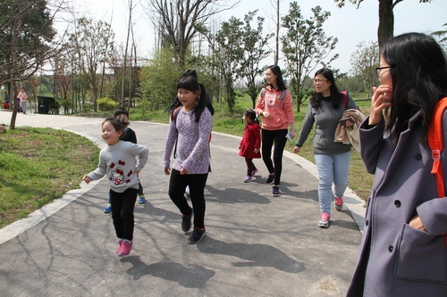 很多教师眺望着成片的菜花,黄色的菜花与绿色的叶子和女同胞及孩子们的衣服色彩斑斓,感叹这简直就是一幅自然画。大家在菜花地里拍照留念;孩子们看着与他们差不多高的菜花,在菜花地里穿梭玩捉迷藏,只听其声,不见其人,玩儿得不亦乐乎流连忘返……他们还去观察小羊、孔雀、公鸡、鸭子,旁边小公园也成为孩子们嬉戏的乐园,他们互相追逐,甚至连地上石头和路边的垂柳都感觉那么亲近;女同胞带着孩子去采摘草莓,孩子们看见红红的草莓,爱不释手,舍不得采摘;有些老师也是第一次到田间去拔青菜、萝卜,割韭菜、芹菜,掐草头,与孩子们一样感到新奇,感受到农民劳动的辛苦,每位老师不仅亲近大自然,而且收获满满。车上、路上女教师们交流各自的科研、育儿的经验……