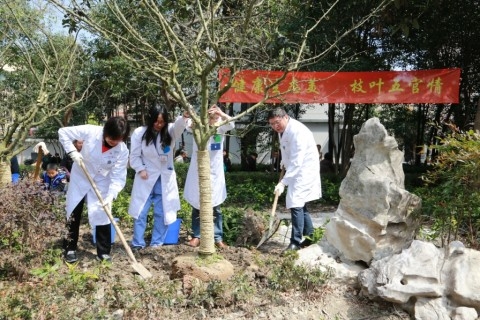 汪志明和李华共同种下一棵海棠树苗。在动员之下,大家纷纷撸起袖子,分组种树,种下两棵海棠与两棵红梅。最后,附属眼耳鼻喉科医院人将植树卡片挂上枝头,期盼来年枝繁叶茂、繁花似锦、绿树成荫的同时也寄予了大家心中建设医院的美好愿望。