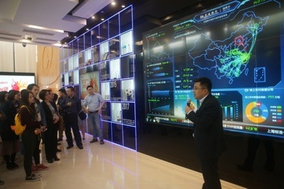 随后,国际文化交流学院师生参观了中心的文化展厅,金融企业日新月异的高速发展、”创新、卓越、担当”的开拓精神以及客户为本的体验思维,激发了大家的广泛共鸣。尤其是中心的实时大屏幕,全面呈现了卡中心在应对大数据时代的挑战和机遇方面的生机活力。而作为业界首创的手机信用卡,更是让大家感受到了秒级服务背后的技术创新和风险防控支持。