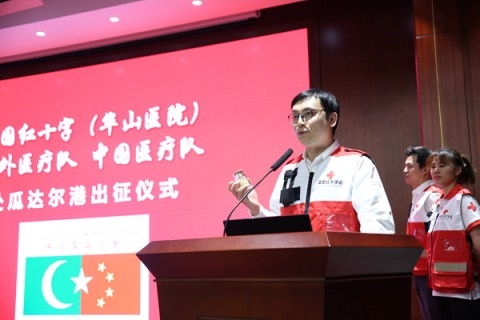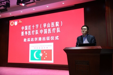 4月16日下午,中国红十字(附属华山医院)援外医疗队赴瓜达尔港第二批队员出征仪式在附属华山医院举行。队长急诊科胡弘、副队长护理部施华、队员骨科石晶晟和检验科许东雯4人将接替附属华山医院第一批援瓜达尔港医疗队,执行为期半年的医疗任务,为中巴友谊以及瓜达尔港的医疗卫生事业奉献力量。附属华山医院院长丁强、党委书记顾小萍等党政班长以及全体中层干部出席,副院长马昕主持。