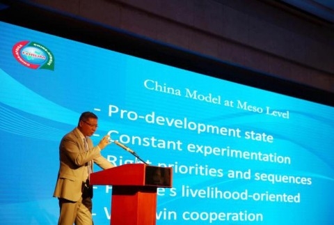 张维为教授从宏观、中观和微观三个层次阐述了中国模式。从宏观层面看,中国模式包括“三个主导”:“选举+选拔”的政治主导、混合经济为特征的经济主导和社会与国家之间正向反馈的社会主导。从中观层面看,中国模式的主要经验是致力于推动发展的政府、不断试验、正确顺序、民生为大、合作共赢等。他以中国在中非合作园区为例,从微观层面分析了包括园区建设中政府的作用、园区的试验与示范效应、民生导向的产业发展模式、造福于当地百姓的合作共赢模式等。