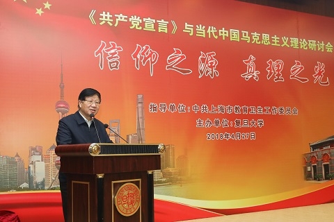 新闻中心讯 在马克思200周年诞辰日前夕,在《共产党宣言》出版170周年之际, 4月27日,复旦大学隆重举行“信仰之源 真理之光——《共产党宣言》与当代中国马克思主义”理论研讨会。