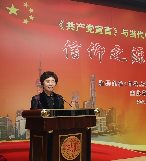 焦扬介绍了复旦在传播和阐释马克思主义、开展马克思主义理论研究和教学等方面的悠久而光荣的传统。她强调,马克思主义基本原理始终闪耀着真理之光,《共产党宣言》是共产党人永恒的信仰之源。站在新的历史起点上,我们要高举马克思主义伟大旗帜,以习近平新时代中国特色社会主义思想为指导,坚持党对高校的全面领导,坚持社会主义办学方向,坚持立德树人根本任务,坚持不懈推进马克思主义学习研究宣传,着力深化马克思主义教育教学改革,着力打造中国特色世界一流马克思主义学科,着力建强马克思主义理论人才队伍,着力推进马克思主义中国化时代化大众化,着力构建具有世界意义的中国化马克思主义话语体系,更好地发展21世纪马克思主义、当代中国马克思主义,使马克思主义放射出更加灿烂的真理光芒。