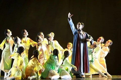 复旦大学学生舞蹈团的作品《望道》讲述的是一名当代大学生以陈望道先生的手稿为媒,穿越到过去,见证这段峥嵘岁月的故事。当演员们一个个举起右手,用坚定的语气喊出“我宣誓”,陈望道在艰苦斗争期间弦歌不辍,教育出一批批青年学子为共产主义传播与民族解放事业作出不朽贡献的事迹骤然立体。