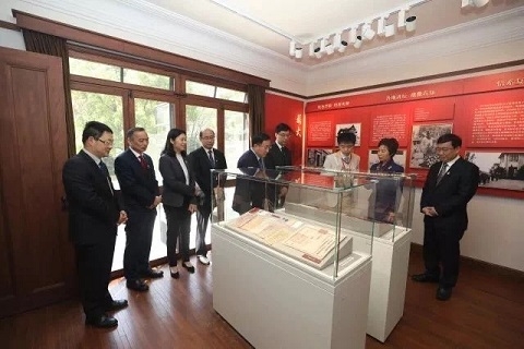 新闻中心讯 “我志愿加入中国共产党……”在马克思诞辰200周年之际,适逢《共产党宣言》发表170周年,同时也是五四运动99周年的重要时刻,为深入学习贯彻习近平总书记重要讲话精神,不忘初心,牢记使命,复旦大学党委常委班子前往刚修缮完成的《共产党宣言》展示馆(陈望道旧居)参观,并集体重温入党誓词,从“信仰的力量”和“真理的光芒”中汲取奋进力量。