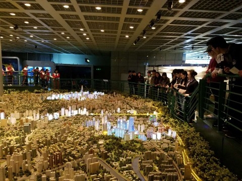 在三楼展览大厅中,学员们沿着巨大的上海市内环线以内城市建设模型地图,了解了从徐汇区到黄埔、从浦东到浦西等上海市各个地区的发展现状以及未来的相关规划。在三楼环绕投影厅中,学员们通过影片进一步观赏了上海市的城市现状 ,既增长了对于上海市城市建设现状的了解,又对于上海市的未来有了新的认识。在二楼展厅中,学员们了解了从古代到近代,从英殖民时期的东印度公司风格建筑到改革开放后保留的万国建筑群、十里洋场等上海市外滩附近区域的发展历程。