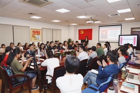 5月4日下午,哲学学院举行主题为“信仰是青春最美的旋律”的庆祝五四青年节暨纪念马克思诞辰200周年党团日活动。活动以“信仰”和“奋进”为关键词,结合专业学习和马克思诞辰200周年,邀请系友、师长与学生座谈,引导学生坚定理想信念,践行青年使命,与祖国与时代同心同向同行。复旦大学党委副书记许征,哲学学院党委书记袁新,哲学学院教授郑召利,校党委学生工作部部长徐瑾,校党委研究生工作部部长方明,哲学系系友、上海市委党校哲学部何莹及学校团委等相关部门与哲学学院70余名青年学生参加。九十余岁高龄的哲学系原系主任胡景钟和哲学学院1986级系友、《第一财经日报》创始人韩国强分别通过邮件和视频发表讲话。