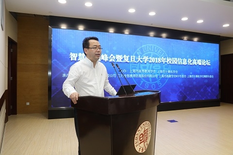 5月11日,智慧校园峰会暨复旦大学2018年教育信息化高端论坛在复旦大学光华楼举行。论坛由上海市高等教育学会、上海市计算机学会共同主办,复旦大学、赛尔网络有限公司、上海市高教学会MIS专委会和上海市计算机学会网络专委会承办。复旦大学党委副书记刘承功出席论坛并致辞,上海市教委副主任李永智、清华大学电子工程系教授李星、华东师范大学副校长周傲英先后作主题演讲。
