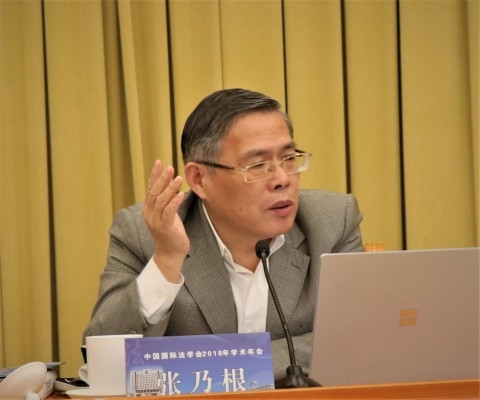 张乃根教授1983年毕业于华东政法学院国际法专业,1986年在复旦大学获得法学硕士学位后留校任教至今,1995年破格晋升教授并负责国际法学科工作,2002年起指导国际法专业博士生,2007年评定为国家专业岗位二级教授、2011年起为复旦大学特聘教授,2015年获国务院特殊津贴证书,曾两次赴美从事富布莱特研究学者的课题研究,并曾任欧美及香港地区多所著名高校或研究机构访问教授,成果多次获上海市哲学社会科学优秀成果一等奖等。在本次学术年会上,张乃根教授作了题为《人类命运共同体入宪的国际法问题》的主旨发言,这是继去年学术年会的发言《试探人类命运共同体的国际法理念》(已在刚出版的《中国国际法年刊》上发表),有关习近平新时代中国特色社会主义思想的国际法理论研究成果之一。