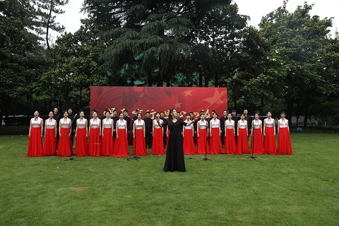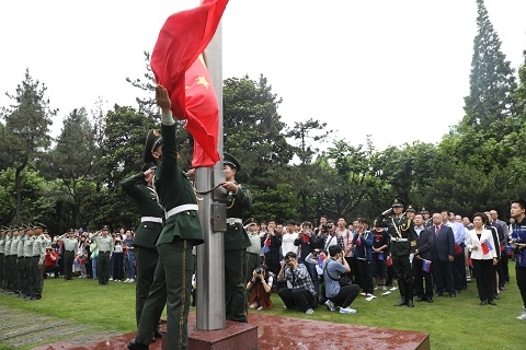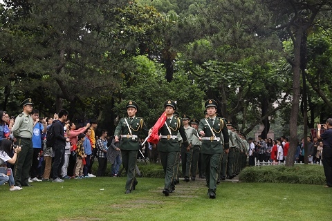 在由校合唱团领唱、全体现场观众合唱的校歌声中,升旗仪式结束。不少师生校友仍留在国旗坪上拍照留念,记录下这共庆母校生日的一刻。