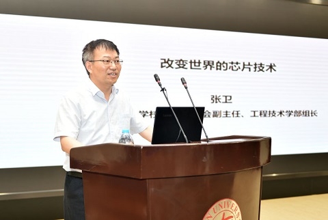 微电子学院执行院长张卫教授就“改变世界的芯片技术”与在座师生畅谈。他是“长江学者”特聘教授,国务院政府特殊津贴获得者,国家重大专项总体组专家、复旦大学学术委员会副主任、工程技术学部组长。主要从事领域为集成电路工艺、半导体器件和半导体材料研究。自1997年以来,张卫承担的国家863、国家自然科学基金、国家重大科技专项、上海市重大重点项目等,已达20多项。1992年以来,他在Science,Nature Nanotechnology, Nature Materials等国际学术期刊和会议上已发表论文200多篇,申请专利180多项,其中美国专利39项。
