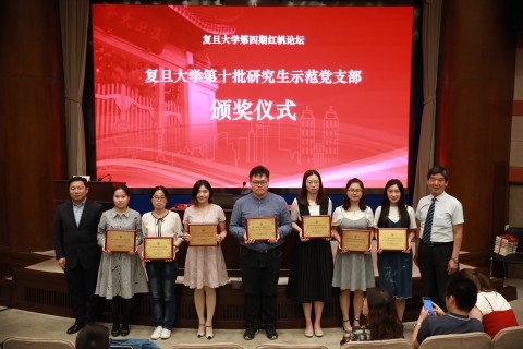 报告结束后,第十批研究生示范党支部奖牌授予仪式举行。在2017年进行的示范党支部创建过程中,15个研究生党支部从67个研究生示范党支部创建单位中脱颖而出,最终获得第十批研究生示范党支部荣誉称号。
