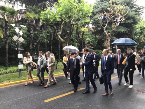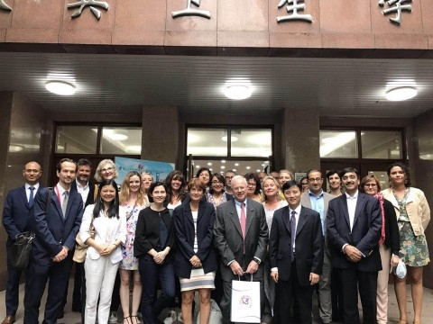 5月19日下午,法国国家社会卫生事务部总监、巴黎政治学院卫生政策研究中心副主任Gilles DUHAMEL教授率法国公立医院系统的医院院长一行27人来访复旦大学公共卫生学院。学院教授罗力接待了代表团,介绍了学院及学校的情况。双方就医院运行和医疗资源配置主题进行了学术交流。
