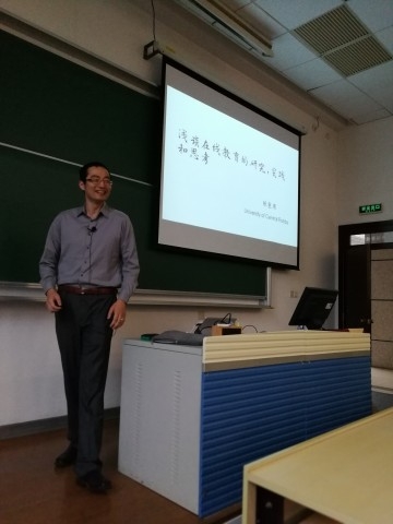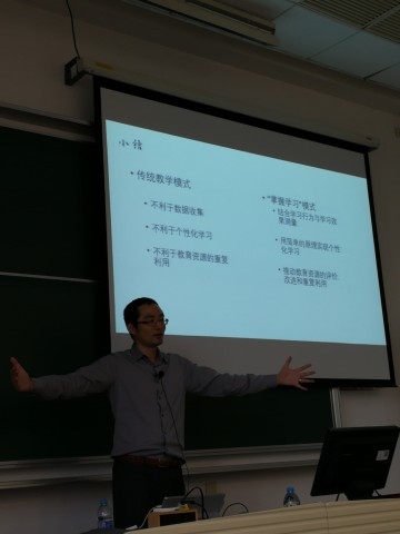 陈重周在讲座中分别就多媒体学习理论、慕课(MOOC)及大规模教学实验、翻转课堂和教育大数据挖掘与个性化教学进行了介绍。陈重周从认知科学的角度分析多媒体对学生知识掌握的影响,以及如何从大脑的认知机制出发设计制作多媒体教学资源以帮助学生掌握抽象的物理概念。他通过实际案例分析比较了教学视频和动画制作中常见方法的优劣,以及多媒体教学资源在整个教学过程中的作用和局限性。他结合自己在美国麻省理工学院开展慕课教学和研究的经验,介绍了慕课的教学实施过程以及如何利用慕课庞大的学生数量开展大规模教学实验。他着重分享了如何通过网络技术实施“翻转课堂”教学,将传统的课堂讲解翻转到课堂外,将传统的课后练习和分组讨论翻转到课堂内。通过具体案例,他还介绍了在线教育数据挖掘的意义、数据研究方法、数据研究结果与个性化教育的关系,并展望了随着在线教育网络教学技术的发展今后如何更好地发挥教师的作用。