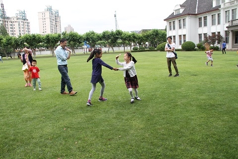 与往年的活动有所不同,本次活动增加了互动环节,还有两个国外的“复二代”小朋友参加。活动邀请了学校魔术团的几位成员与孩子们互动。在表演魔术的过程中,孩子们目不转睛地查看每个细节,开动脑筋猜测魔术原理。作为六一亲子活动的保留项目,孩子们排好队依次进行套圈。没套着的东西的孩子思考自己的失利的原因,再继续努力;套着礼物的孩子欢呼雀跃,与朋友们分享胜利果实。不会走的孩子在垫子上爬行,比赛把乒乓球塞进纸盒里;还有几位年轻的妈妈坐在身边看着这几个不会讲话的孩子如何交流;有些年轻爸爸把孩子捧在怀里,上下前后晃动,有的父亲把孩子放在推车上不停地推动;大一些的孩子们在草坪上三五成群、奔跑嬉戏。活动结束后,孩子们把草坪的纸屑和杂物收拾干净,与父母一起领取了自己心爱的书包和文具。