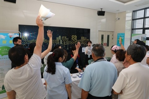 在节能知识竞答专场,员工们在门诊大厅争相回答有趣的节能问题,将节能小知识带入自己的日常生活。“煮鸡蛋时,水开之后过1分钟关火,盖上锅盖,水的余温可以将鸡蛋焖熟,这样不仅节能降耗,鸡蛋的口感也刚刚好。”“如果碳排放持续上升,气候变化加剧,我们的家园会变成什么样?冰川融化、海平面上升,极端天气事件频发,农作物减产,天空不再蔚蓝…”