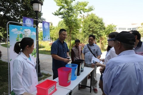 在废旧电池换绿植专场,员工们在绿树成荫的中心广场用废旧电池兑换绿色植物。据专家测试,一粒纽扣电池能污染600立方米水,一节一号电池烂在地里,能使一平方米的土地失去利用价值。废旧电池如果与生活垃圾混合处理,电池腐烂后,其中的重金属溶出会污染地下水和土壤,以及鱼类、农作物,最终殃及人类自身。收集一颗电池,交给专业的人员处理,等于保护了水源和土地,保护了绿色。参与者们将一片小小的绿色带回了家,也将回收不可降解垃圾的理念根植在心中。