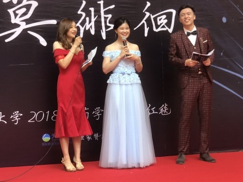 红毯活动共分三场,由毕业生自行组队,其中有以宿舍为单元的组合,也有与好友男友比肩的搭档,他们伴随音乐缓缓走来,不疾不徐,靓丽夺目。活动中不断穿插中场表演及嘉宾专访,其中,进校早期的辅导员汪洋洋和褚正豪在访谈中缅怀过往,憧憬未来;药学院分团委书记王冰分享了孙昶领的致函,传达了 “既希望大家顺利毕业,又期望自己能多陪伴大家一段时间”的拳拳之心。