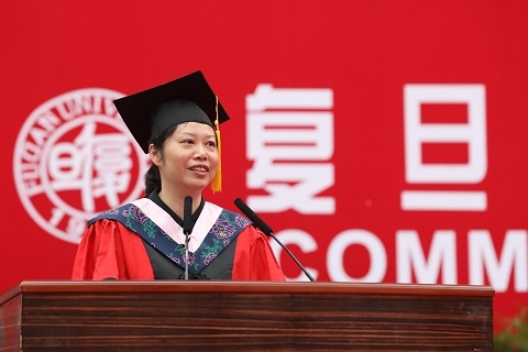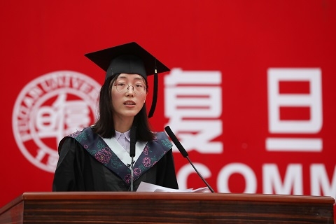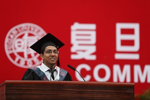 来自孟加拉国的普里通同学作为留学生代表发言。他分享了自己在复旦的人生感悟,在求学道路上不言弃,并深入文化交流与互助。“我真的很享受在复旦的生活,我会永远记得这些美好的回忆。我从来没有说但今天想说:复旦,我爱你!” 毕业之后,他选择继续深造,并希望留在中国工作,把中国的先进技术带回孟加拉国,为两国友谊做出自己的贡献。发言最后,他与在场毕业生共勉:“我们将会把复旦的名字传遍全世界,让复旦为我们感到骄傲!”