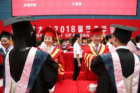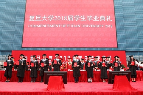 6月29日上午,复旦大学2018届本(专)科生毕业典礼在复旦大学正大体育馆隆重举行。校党委书记焦扬、校长许宁生等学校党政领导,教师代表,校友代表,各院系党政领导,部分机关部处负责人,毕业生家长代表等共同为3300余名2018届全体本(专)科毕业生送别。典礼由常务副校长桂永浩主持。