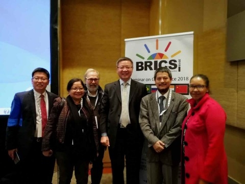 7月4日,2018金砖国家治国理政研讨会在南非约翰内斯堡桑顿国际会议中心举行,来自金砖国家的智库和学界代表围绕“参与全球治理:维护人民利益,贡献金砖智慧”主题深入交流治国理政经验。中宣部部务会议成员、国务院新闻办副主任郭卫民和南非公共事务管理部部长艾恩达·德罗德罗分别发表主旨演讲。复旦大学特聘教授、中国研究院院长张维为应邀参会。