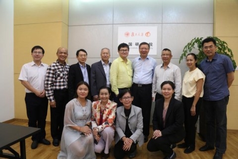 2018年7月20日中午,泰国国家研究院理事会泰中战略研究中心顾问委员会主席、兰实大学公共管理学院院长刘冠能(阿内·劳塔玛塔)教授一行12人到访复旦大学中国研究院。泰方人员在院长助理余亮副研究员的陪同下,参观了中国研究院办公场所,了解了研究院的发展历程、团队构成和研究院在新媒体传播等领域取得的成果。随后双方就“选择与发展道路”为主题,开展了小型学术研讨。