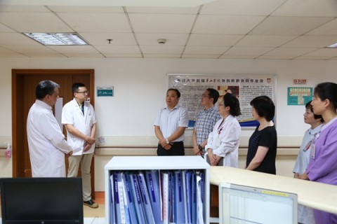 7月13日下午,国家卫健委宣传司米锋副司长、金婷处长和曹丹老师一行在上海市卫计委新闻宣传处王彤处长的陪同下来到华山医院,回访慰问了2018年5月“中国好医生”获奖者、华山医院普外科副主任王正昕教授及其所在的工作团队。华山医院党委顾小萍书记、邵建华副院长、普外科主任钦伦秀教授、党办王晋伦主任、陈勤奋副主任等在红十字会老楼接待了米司长一行并陪同走访了王正昕教授所在的肝胆外科17病区,慰问了在病区工作的一线医护人员。