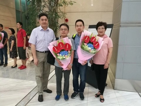 7月15日清早,华山医院神经外科主治医师胡枢坤和呼吸科主治医师作为上海市第四批“组团式”援藏医疗队员开拔西藏,执行为期一年的医疗支援任务,党办王晋伦主任和院工会苏家春常务副主席为他们送行。