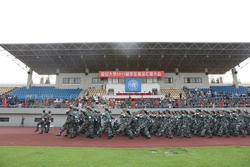 9月5日,复旦大学2017级学生军训汇报大会在南区体育场隆重举行。承训部队首长,复旦大学党委书记焦扬,常务副校长桂永浩,党委副书记、军训团政委许征,党委副书记、纪委书记袁正宏以及武装部、学工部相关负责同志出席本次汇报大会。