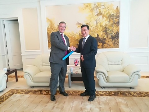 Chambers、华威大学驻北京代表处主管Jackee Ma、正在复旦大学访学的教授Shaun Breslin,和复旦大学外国语言文学学院教授朱建新、历史学系教授朱联璧、类脑研究院外籍专家David Waxman以及外事处相关负责人陪同会见。