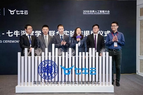 9月19日,由复旦大学与上海七牛信息技术有限公司共同建设的“复旦—七牛深度学习联合实验室”在上海国际会议中心举行的2018 年世界人工智能大会(2018 WAIC)·智能图像主题论坛上正式揭牌。