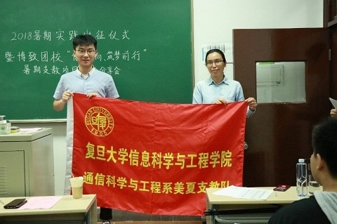 暑期实践出征仪式暨博致团校“信之所向,筑梦前行”暑期支教项目经验分享会上,来自信息科学与工程学院不同系的支教队相聚一堂,由学院党委副书记黄芳为各支教队伍进行指导,并授予旗帜。往届的支教成员也与大家进行了经验分享,将支教的经验和收获传递给一批又一批信院支教队员们。