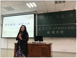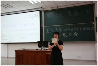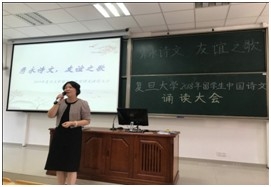 9月28日下午,由复旦大学语言文字工作委员会秘书处、外国留学生工作处和国际文化交流学院联合主办“隽永诗文,友谊之歌”复旦大学2018年留学生中国诗文诵读大会举行。本次活动以构建人与自然、人与人、人与社会和谐共存的人类命运共同体为核心理念,让留学生感悟中华经典诗文的魅力。