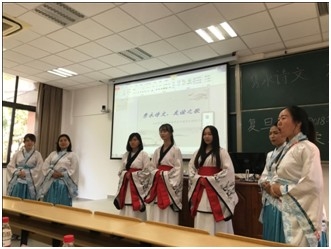 比赛中,个人组和集体组选手交替登台进行表演,以丰富多彩的形式演绎脍炙人口的中华经典诗文。从《观沧海》到《爱莲说》,从《将进酒》到《水调歌头》,从《从前慢》到《致橡树》等篇目,诵读作品贯通古今。来自韩国、日本、缅甸、泰国、马来西亚等国的七位留同学身穿汉服,演绎《木兰辞》,生动地展现了木兰替父从军的故事。来自美国、俄罗斯、立陶宛、秘鲁等近十个国家的十八位留学生,通过伴舞、领诵、齐诵、多语演唱等形式,为在场师生带来了一首《送别》。一个个精彩的节目不仅让人看到了复旦留学生青春昂扬的精神风貌,更加令人感受到这些来自世界各国的留学生对中国经典诗文的深深热爱和对中华优秀传统文化的积极弘扬与传播。