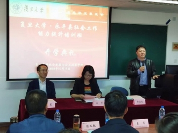 2018年10月15日,社政学院又承接了永平县社会工作能力提升的干部培训任务。曾经挂职永平担任副县长的复旦大学改革与校外合作办公室副主任郭建忠、复旦大学社政学院分党委书记尹晨、永平县委副书记王萍等参加了开班仪式。社政学院院长助理宋继国老师与永平县相关部门反复联系、精心筹备,为培训班配备了高水平的专业教师,完善了课程体系,还与浦东新区挂职永平的干部合作,联系了浦东新区社会组织服务中心以及街镇社区事务受理服务中心等进行现场教学。