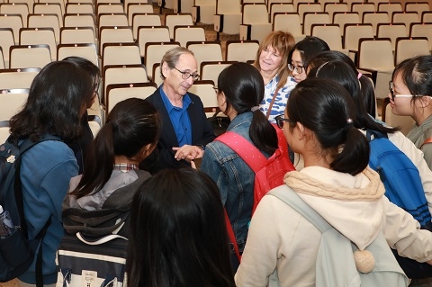 讲座一结束,还没“吃饱”的同学们把刚走下讲台的莱维特教授团团围住:“教授,我想知道计算机该怎么更好地跟基础科学研究结合起来?”“教授,我想申请成为您的博士生,该怎么做?”……谈科学,也聊人生,与诺奖科学家的面对面交流,让在场的同学们受益匪浅。