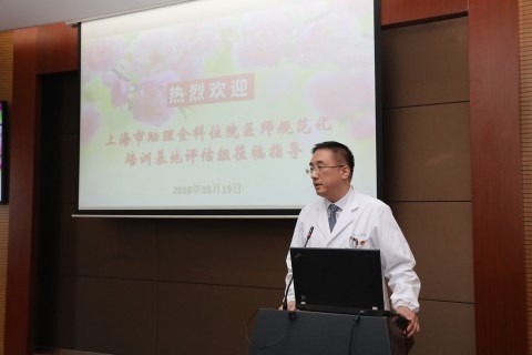 会上,强金伟分别从医院的基本条件、师资条件、过程管理、质量控制、特色亮点等五方面对助理全科医师规范化培训工作作了汇报,阐述了助理全科在附属金山医院培训的全过程。