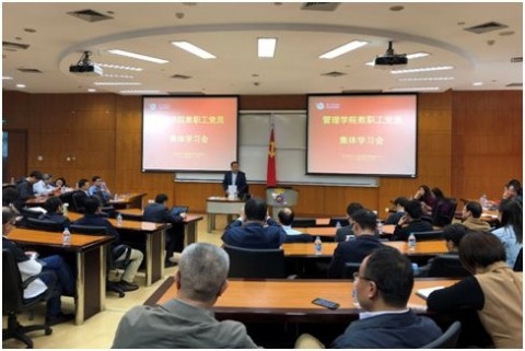 10月23日下午,管理学院党委举行教职工党员集体学习会。学院党委书记李尧鹏同志作了学习贯彻学校第十五次党代会精神和深入学习《中国共产党纪律处分条例》的专题宣讲。