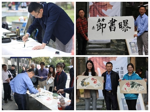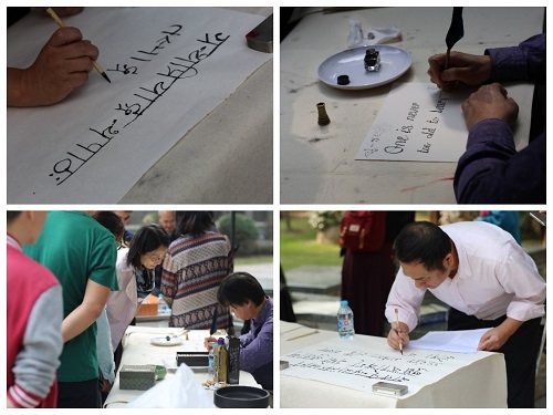 此次曝书会邀请到擅长书法的教师现场泼墨,更有西文书法和藏文、梵文题字。翰墨飘香,笔走龙蛇,老师们用一笔一画为曝书会增光添彩。