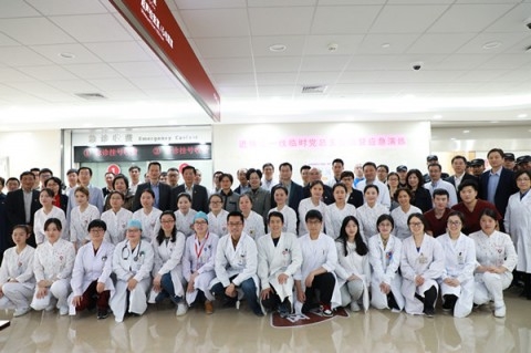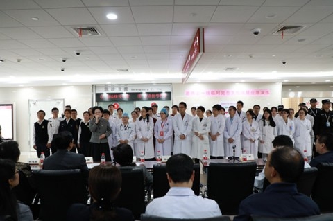 授旗仪式后,在市卫计委应急办的统一部署下,华山西院进博会绿色救治通道医护人员联合上海市、闵行区急救中心开展了群伤应急处置联合演练。毛颖代表华山西院介绍了进博会医疗保障队伍的相关情况,马昕向市卫计委汇报演练模拟情景,并宣布应急演练正式开始。