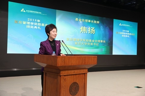 焦扬向长期以来关心和支持复旦大学和复旦管理学奖励基金会发展的各位领导、社会各界人士表示感谢,向今年的获奖者表示祝贺。她指出,在习近平新时代中国特色社会主义思想的指引下,复旦管理学奖励基金会将不忘初心使命、勇立时代潮头,始终以推动中国管理学长远发展为己任,始终为发展壮大中国管理学人才队伍而努力,始终为世界贡献中国本土的管理思想成果而奋斗,努力在推动中国管理学学科建设、人才培养、思想传播等方面有更大作为,发挥更大作用,作出更大贡献。