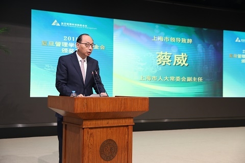 复旦管理学奖励基金会理事长、复旦大学党委书记焦扬,上海市人大常委会副主任蔡威,复旦管理学奖励基金会名誉理事长、香港中文大学原校长刘遵义先后在颁奖典礼上致辞。颁奖典礼由复旦管理学奖励基金会副理事长、中化集团董事长、党组书记宁高宁主持。