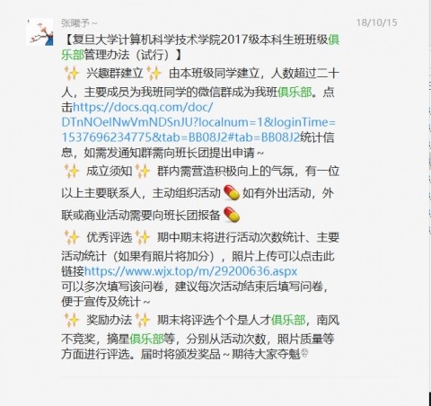 2017级计算机科学与技术本科班班长于10月15日提议发起建造班级俱乐部,班上同学们积极响应号召,并于10月28日率先在线上创立了不同于学术讨论群的新型学习俱乐部——“代码俱乐部”。微信群一经建立,立刻受到了同学们的拥护并奉以积极的参与度。现如今,该俱乐部人数已达134人,学术氛围浓厚,同学们在此获得了不一样的学习体验。