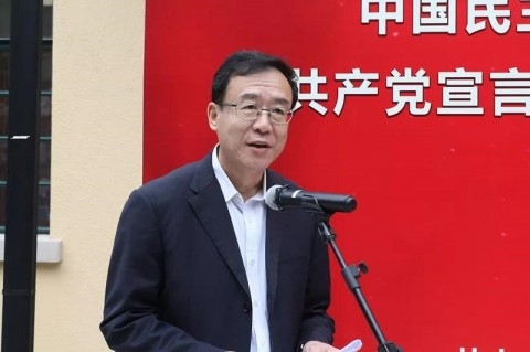 沈志刚在致辞中表示,陈望道先生是卓越的政治活动家,著名修辞学家、语言学家,也是中国民主同盟和复旦大学的老领导。作为学者,他治学严谨、著作等身、勇于创新,是广大知识分子学习的典范;作为民盟上海市委主委,他始终把坚持中国共产党的领导作为党派工作的核心,带领民盟组织开创了工作新局面。在《共产党宣言》展示馆(陈望道旧居)挂牌建立民盟传统教育基地,就是希望引导广大盟员学习和继承陈望道先生等前辈的政治信念、优良传统和高尚风范,始终坚持中国共产党的领导,始终坚持走中国特色社会主义道路,始终秉持民盟“关注民生、奔走国是”的优良传统,为全面建成小康社会,为上海建成卓越的全球城市做出新的贡献。