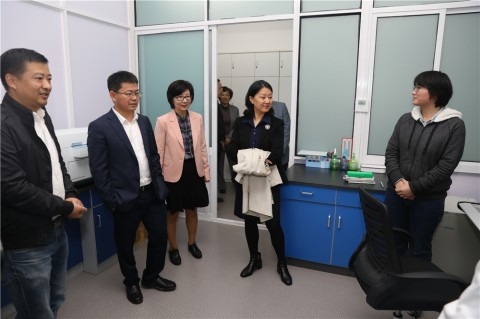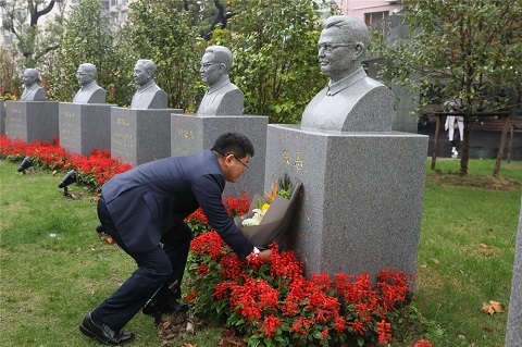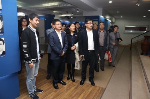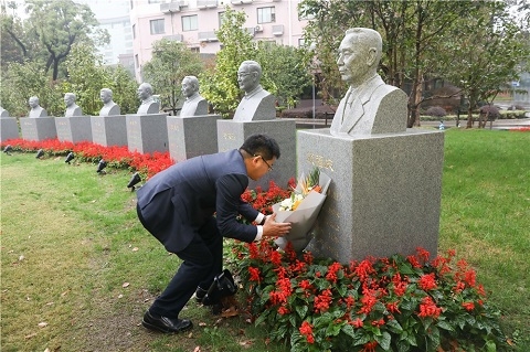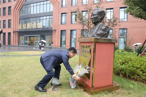 在细雨之中,黄爱龙一行向原上海第一医学院院长兼党委书记、重庆医科大学首任院长陈同生,上医创始人、重庆医科大学筹委会主任颜福庆,以及上医原副院长、重庆医科大学名誉校长钱惪等16位一级教授的雕像献花,实地参观上海医科大学校史馆、医学分子病毒学教育部/卫健委重点实验室、基础医学院高通量平台、校图书馆医科馆,并在医科馆与在复旦大学上海医学院学习的重庆医科大学学生亲切交流。