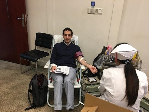 11月16日上午,微电子学院Antoine Riaud (刘安)、王凡、陈帅三名老师参加了2018年下半年复旦大学无偿献血活动。