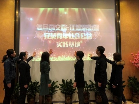 国际文化交流学院师生首先参观了“江浦汇·宝地中心”党建服务站,服务站先进的设施和温馨的环境令人印象深刻。仪式开始后,与会人员共同观看了国交院宣传短片《星火五洲传》和江浦社区党员教育片《平凡的一天》,加深彼此的了解。之后,王颖、章爱敏与校地双方党员青年代表一起为“复旦国交院-江浦街道”公益实践基地揭牌。郑阳与郑一鸣共同签署了校地共建合作备忘录。国际文化交流学院学生办公室主任李洁受双方委派,根据合作备忘录中明确的框架,结合校地双方资源优势和实际需求,介绍发布了首批校地社会公益实践项目。江浦街道位于杨浦“西大门”,区域内既有新华医院、电控研究所等知名国有单位,也有西门子、大陆、李尔等世界500强企业。今年新建的“江浦汇.宝地中心”党建服务站位于大连路总部集聚区的核心位置,将为校地合作、服务青年党员提供理想的活动空间。来自李尔(中国)投资有限公司的设计工程师孔德韵、国交院2018级研究生党员代表王莹分别进行了交流发言,对校地合作表达了热切期待及积极参与的愿望。