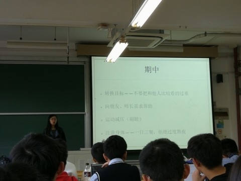最后,刘蕴涵重点分析了期中考试期间同学们的心理方面的变化,也告诉了同学们一些用于减压的方法,并用罗曼·罗兰的名言告诫同学们:“世界上只有一种英雄主义,就是在认清生活的真相后依然热爱生活。”她鼓励同学们要追求梦想,但不要因为梦想不顾一切,要有应对失败的能力;鼓励同学们多关注自身的心理健康,并告知同学们如有需要该求助谁。