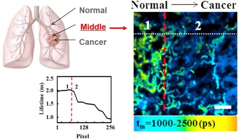 图2:一个肺癌患者肿瘤交界区域的荧光寿命显微成像。