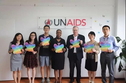 吴泽涛(左三)在联合国艾滋病规划署(UNAIDS)驻华办事处